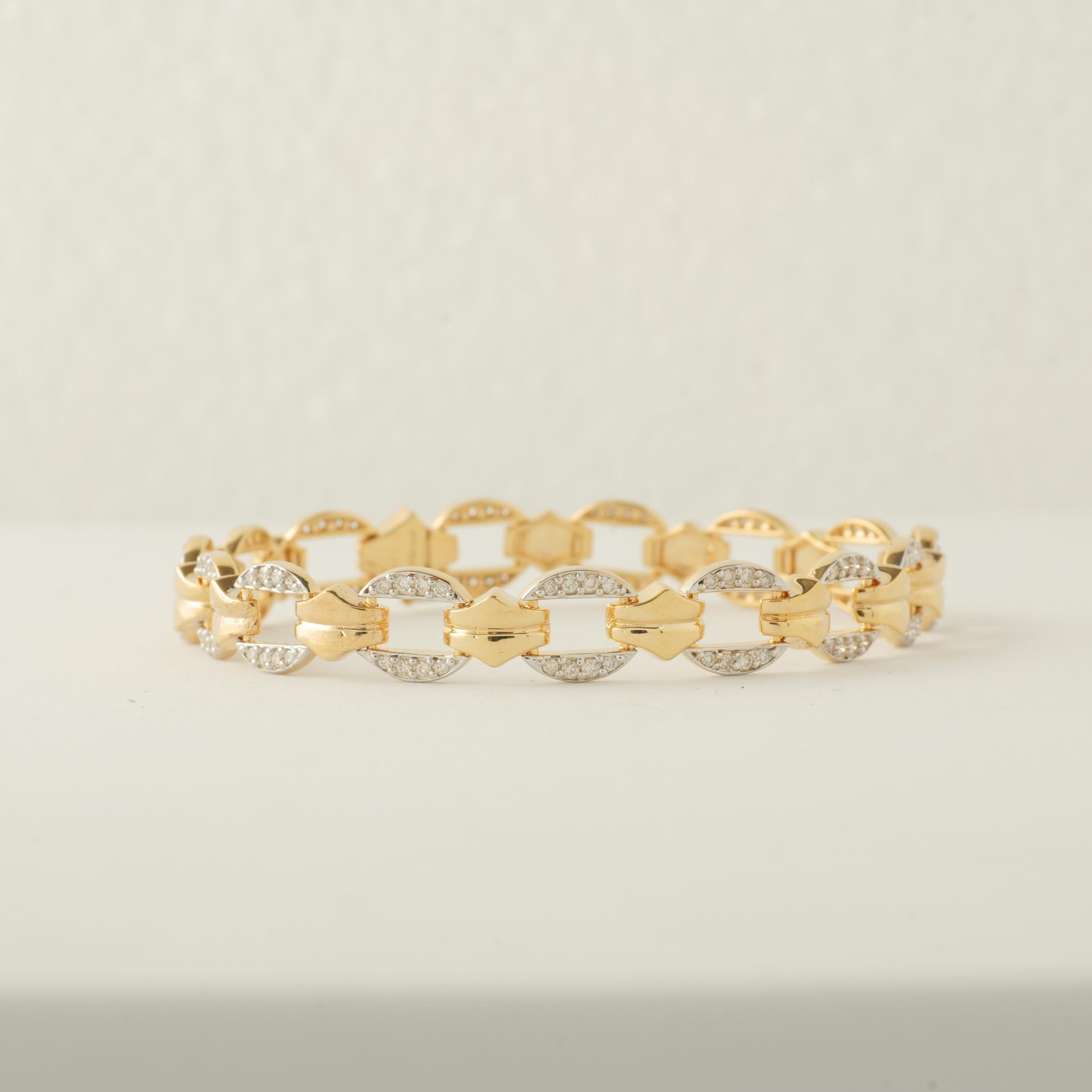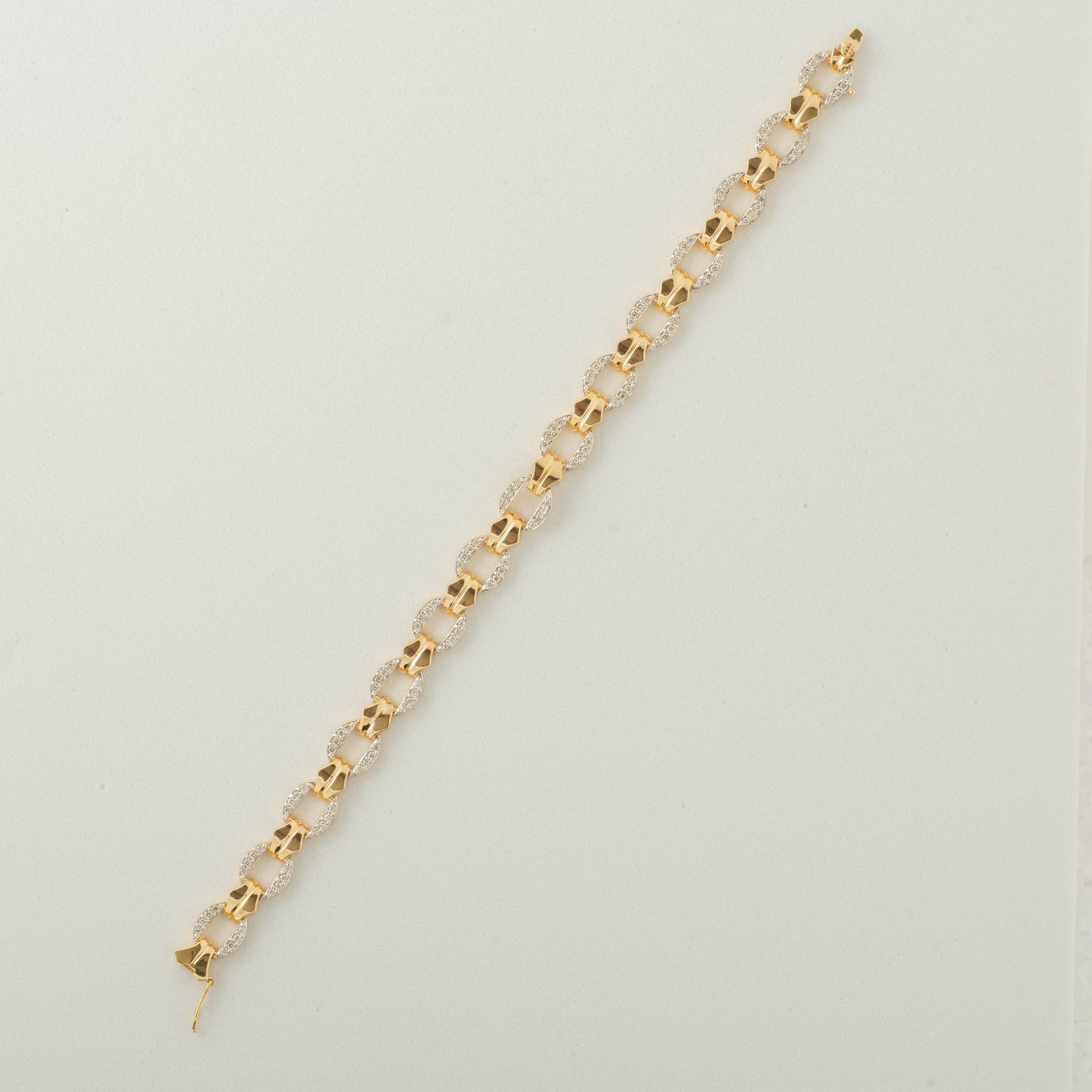 Men's Diamond Chain Link Bracelet, 14K Solid Gold, Natural Diamonds, Linked Cuban Bracelet, Geometric Jewelry, Ready To Ship, IGI Certified