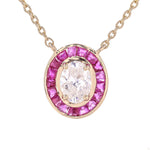 Load and play video in Gallery viewer, Oval Diamond Necklace with halo set ruby