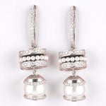 - Pearl Drop Diamond Earrings, 14K Solid Gold, Natural Diamonds, Black Enamel Dangle Hoops, Cocktail Statement Earrings, Bridal Jewelry