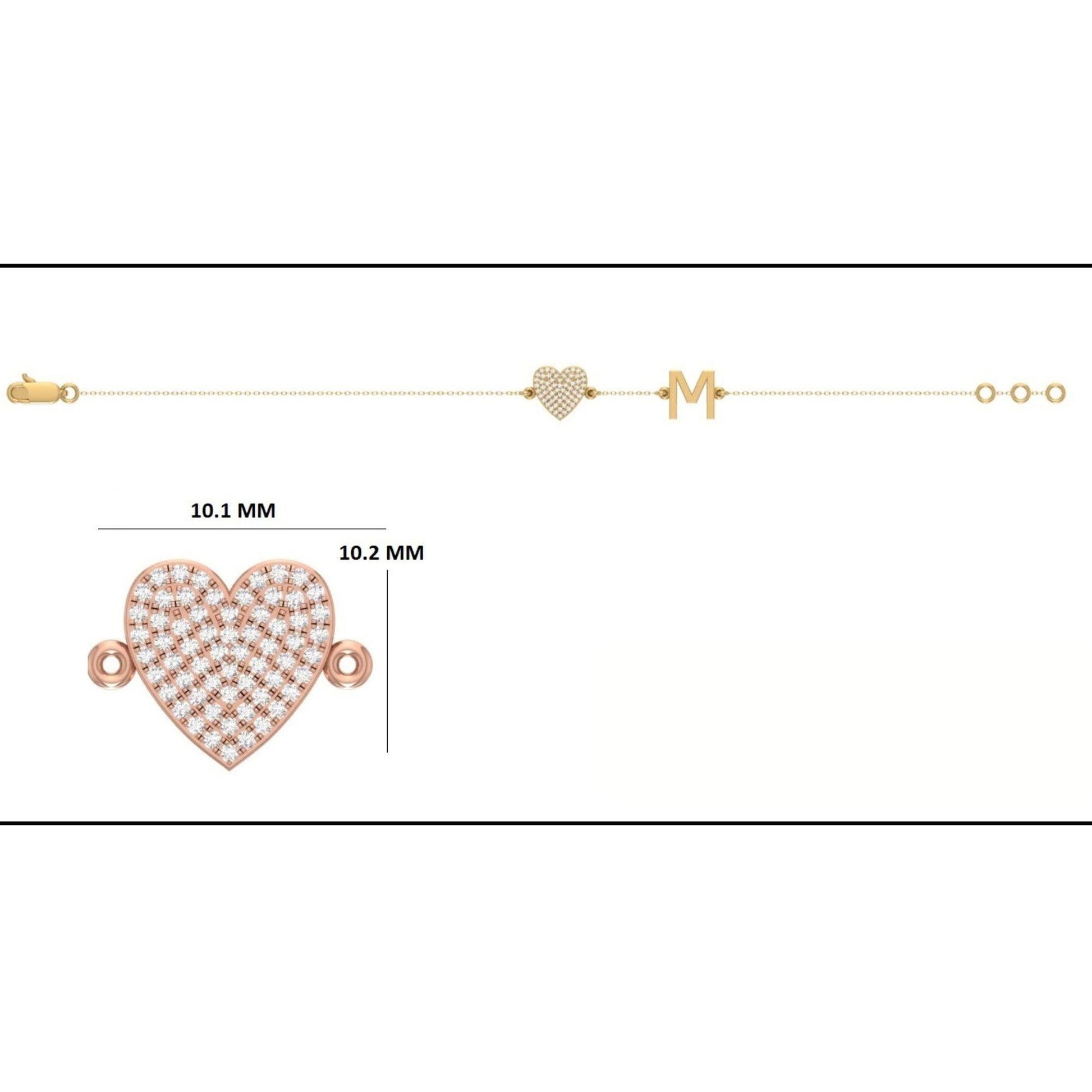 Heart Initial Natural Diamond Bracelet: 14k Solid Gold Personalized Letter Bracelet, Minimalist Custom Chain Jewelry, Ready To Ship